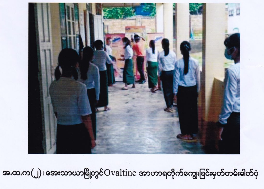 ၂၀၂၀-၂၁ ပညာသင်တွင် တောင်ကြီးမြို့ပေါ်ရှိ အထက(၅)တောင်ကြီး၊ အထက(၆)တောင်ကြီး၊ အထက(၇)တောင်ကြီး၊ အထက(၁) အေးသာယာ၊ အထက(၂) အေးသာယာ ကျောင်းများတွင် ၂၃-၇-၂၀၂၀ မှ ၂၉-၇-၂၀၂၀ ရက်အတွင်း Ovaltine တိုက်ကျွေးခြင်း အပေါ် Covid-19 ညွှန်ကြားချက်များနှင့်အညီ တိုက်ကျွေးနိုင်ခဲ့ပါသည်။